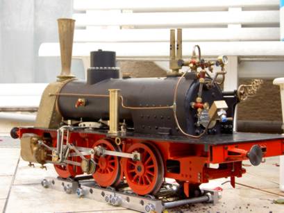 Am 21.07.2005 konnte ich endlich, wenn auch bei regnerischem Wetter, zur Jungfernfahrt in Sindelfingen starten. Die Zugkraft lag trotz nassen Schienen ohne Probleme bei einem Erwachsenen und zwei Kinder. An der Steigung kurz vor der Ausweichstelle konnte sogar vom Stand aus angefahren werden. Einem nächsten Test oder dem Dampftreffen am 27. + 28. 07.05 in Sindelfingen steht also nicht mehr im Wege.